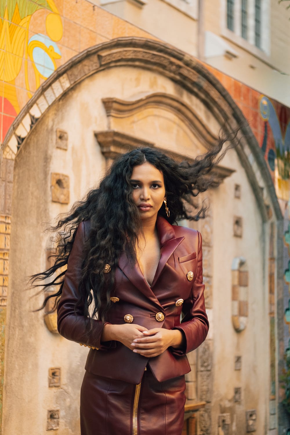 Conquering didn’t look cinematic at first. It looked like smaller e-commerce shoots modeling smaller products. Then came the commercial castings. Next, fashion weeks in Los Angeles and Miami. A slow accumulation of credibility in an industry that often treats beauty as currency and individuality as a risk. She describes feeling too ambiguous to fit neat categories—“not Black enough and not Asian enough”—yet, those same tensions became the texture that would soon set her apart.