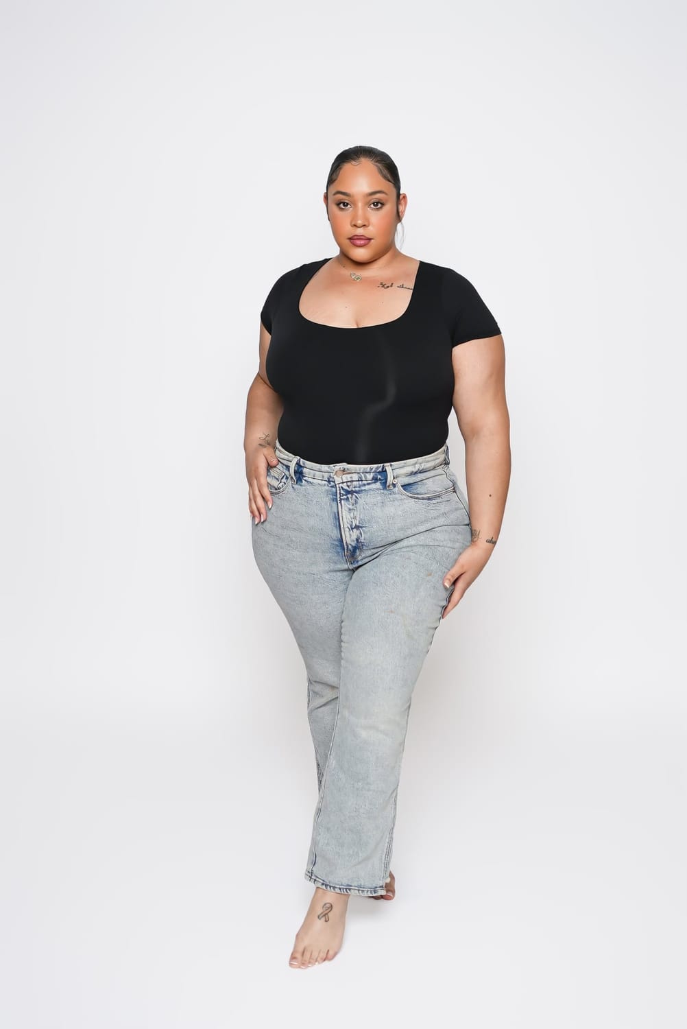 There is elegance in her stillness and strength in her softness, a balance that invites the viewer to reconsider long-held assumptions about size, beauty, and presence.